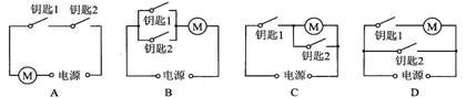 8.(09赤峰)中考试卷库大门控制电路的两把钥匙分别有两名工作人员保管,单把钥匙无法打开,如图所示电路中符合要求的是