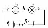 5.如图所示的电路,闭合开关S后,两灯都不亮。用电压表检测得到的结果是:Uab=Ubc=Ude=Uef=0,若故障只有一处,则可能的原因是