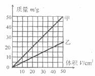 41.图是探究甲、乙两种物质质量跟体积关系时作出的图像。以下分析正确的是