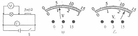 42.在图所示的电路中,开关S闭合时,电压表V和Vl的示数如图甲、乙所示,则该电路中的电流为