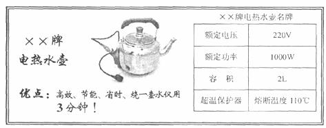 ④根据上述计算结果,请你对上述宣传广告中“电热水壶的优点”有关内容作出评价。