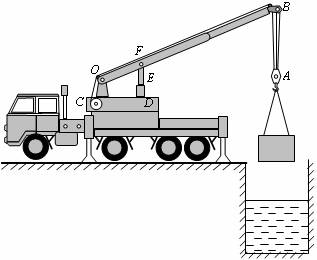 39.下图是液压汽车起重机从水中打捞重物的示意图。起重机总重G=8×104N,A是动滑轮,B是定滑轮,C是卷扬机,D是油缸,E是柱塞。通过卷扬机转动使钢丝绳带动A上升,打捞体积V=0.5m3、重为G物的重物。若在打捞前起重机对地面的压强p1=2×107Pa,当物体在水中匀速上升时起重机对地面的压强为p2,重物完全出水后匀速上升时起重机对地面的压强p3=2.5×107Pa。假设起重时E沿竖直方向,重物出水前、后E对吊臂的支撑力分别为N1和N2,重物出水前滑轮组的机械效率为80%,重物出水后卷扬机牵引力的功率为11875W,吊臂、定滑轮、钢丝绳的重以及轮与绳的摩擦不计。(g取10N/kg)求: