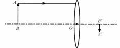 21.如图所示是照相机的原理图,A’B’是AB的像。请画出图中与入射光线对应的折射光线,并确定凸透镜一侧焦点的位置,用字母F表示。
