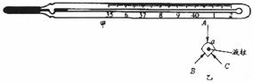 6.今年春季,我省菏泽市出现了几例“手足口”病之后,引起了省政府的高度重视,部分地区已经要求各地学校每天对学生进行晨检、晚检,并报告检查情况,其中就用了到体温计。下图甲是一支常见体温计的示意图,由此可知体温计的测量结果比实验用温度计更精确,但因液柱太细难以读数,所以体温计具有特殊构造,其横截面如图乙所示,a为向外凸起的弧形玻璃面,要看清体温计中液柱的位置就应沿_________方向观察(“A”、“B”或“C”),这是利用____________________________________。