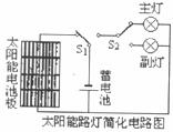 2.(9分)有一种太阳能路灯(电路如下图),光控开关S1,白天与触点a接触,太阳能电池板为蓄电池充电,晚上,与触点b接触,给路灯供电。时控开关S2,晚上12点前与触点c接触,主灯发光,12点后与触点d接触,副灯发光。主灯为“24V 15W”的节能灯,副灯为“24V 10W”的节能灯,平均每天各工作6小时。