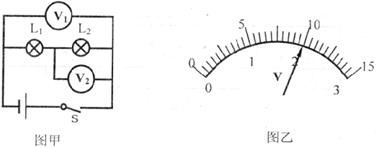 6.小明按图甲所示的电路进行实验,当开关闭合后,电压表V1和V2的指针位置如图乙所示完全一样,则灯泡L1和L2的电压分别是