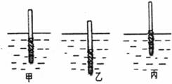 5.王磊学过了“物体的浮与沉”后,自己制了一个简易的密度计,他将细木棍下部缠上铁丝后,分别放人甲、乙、丙三种液体中时,恰好竖直漂浮,如下图所示,则下列说法正确的是