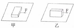 4.如下图所示,表面粗糙情况相同的长方体木块在水平力F作用下运动,水平面作用于木块的滑动摩擦力在图甲、乙两种情况中