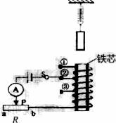 13.如下图验装置,弹簧测力计下面挂着条形磁铁,它的上端为S极,螺线管中插有铁芯。己知开关S与触点②接触且电流表的示数为I。下列操作方法中,能够使弹簧测力计示数变大的是