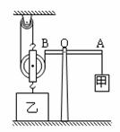 41.在图所示装置中,甲物重G甲=10N,乙物重G乙是动滑轮重G轮的8倍。物体乙跟地面的接触面积为1.5×10-2m2。轻杆AB可以绕O点转动,且OA∶OB=2∶1。不计轴摩擦,装置如图所示处于平衡状态时,乙对水平地面的压强P=2×103Pa。求:此时动滑轮对物体乙的拉力F拉;若在物体甲下面再加挂物体丙,恰使物体乙对地面的压强为零。求:丙的物重G丙。