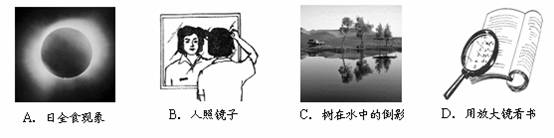1.如图所示的四种现象中,属于光的折射现象的是: