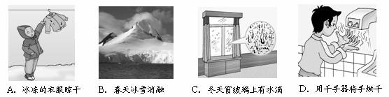 3.下图所示的四种现象中,其物态变化属于放热过程的是: