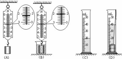 方法二:阿基米德原理法。测量过程与示数如图(C)(D)所示,则排开水的体积为___________mL,根据F浮=G排=ρ水V排g可计算出浮力。