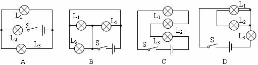5.在图所示的四个电路图中,三盏灯属于并联的电路图是