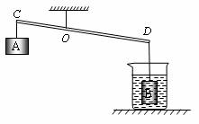 23.如图所示,利用此杠杆装置可将浸没在水中的物体B提出水面。已知OC∶OD=1∶2,物体A的质量为200g。烧杯的底面积为75cm2,物体B的质量是320g,体积是40cm3。当物体B浸没在水中时,水对杯底的压强为p1。当用力拉A,将物体B从容器底提出水面一部分以后,杠杆恰好在水平位置平衡,此时,竖直向下拉A的力为F,杯中水对容器底的压强为p2。若p1与p2之差为40Pa。则拉力F是_____________N(g取10N/kg,杠杆的质量、悬挂物体A和物体B的细绳的质量均忽略不计)。
