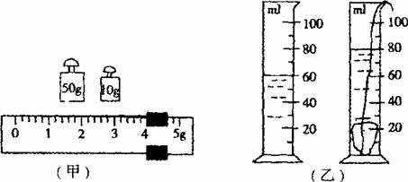 19.在“用天平和量筒测定固体和液体的密度”实验中,为测定物体的质量,调节天平横梁平衡时,发现天平的指针静止在分度盘中央刻度线的左侧,则应将横梁上的平衡螺母向______调节。将一矿石标本放在已调好的天平左盘内,当天平重新平衡时,右盘内的砝码和游码在标尺上的位置如下图甲所示,则矿石的质量为______g。将矿石标本放人装有水的量筒中,量筒中水面位置的变化情况如下图乙所示,则矿石的体积为_______cm3,这种矿石的密度为________kg/m3.