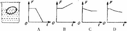 5.小张看到鸡蛋浮在盐水面上,如下图所示,他沿杯壁缓慢加入清水使鸡蛋下沉。在此过程中,鸡蛋受到的浮力F随时间t的变化图像可能是下图中的