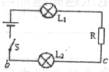 10.如下图所示电路中,L1、L2是两盏完全相同的灯泡。闭合电健S后,L1、L2均正常发光,过了一会儿突然两灯同时熄灭,检查时发现:若用一根导线先后连接电健S的两端和电阻R的两端,电路均无变化,两灯仍然不亮。若用电压表测L2两端b、c两点间的电压,电压表的示数明显高于L2的额定电压,据此可以判断