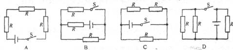 11.在下图的四个电路图中,开关S闭合后,三个电阻都是并联的是