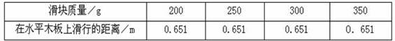 甲:让木块从斜面的顶端由静止滑下后沿水平木板滑行,观察并记录木块在水平木板上滑行的距离和木块的质量;分别在木块上放上数量不等的钩码,先后让其从同一斜面的顶端由静止滑下后沿同一水平木板滑行,观察并记录每次木块在水平木板上滑行的距离和木块及其上钩码的质量。