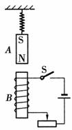 C.螺线管磁性增强,弹簧变长 D.螺线管磁性增强,弹簧变短