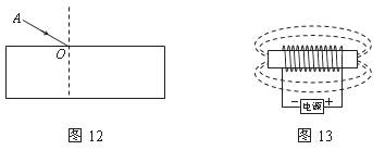 18.(2分)如图12所示,AO表示从空气斜射向平行玻璃砖上表面的一束光,请画出这束光通过玻璃砖的光路图。