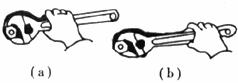 12.小明同学要用扳手把晾衣架上的螺帽拧紧,他用如图所示的两种方法,图__________的握法更有利于拧紧螺帽,因为____________________.