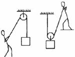 24.如下图是工人师傅提升重物的示意图。已知滑轮质量相同,若把同一货物匀速提升相同的高度(不计摩擦),则