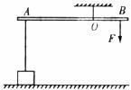 26.如下图所示,一根轻质木杆A端细线下挂50N的重物静止在水平地面上,当在B点加竖直向下的作用力F=30N时,木杆恰能在水平位置处于平衡状态,此时细线竖直.已知OA=15cm,OB=5cm,则重物对水平地面的压力为