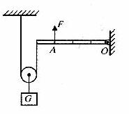 11.如图所示的装置,滑轮自重20N,其下端挂重280N的物体G;杠杆可绕水平轴无摩擦地转动,绳和杠杆质量忽略不计,杠杆上标度的间距相等。要在图示水平位置使杠杆平衡,在杠杆的A点所加的竖直向上的力F应是