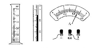 20.(3分)正确读数是做好物理实验的关键,如图所示,量筒中液体的体积是________;温度计显示的温度是___________;电流表的示数是______________________。