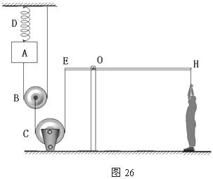 。(杠杆EH、弹簧D和细绳的质量均忽略不计,不计绳和轴之间摩擦)。求:
