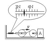 22.如图所示,用水平力F通过滑轮组(滑轮的质量可忽略,且不计轮与轴间的摩擦)拉动物块A在水平地面上做匀速运动,弹簧测力计的示数如图所示。对物块A施水平向右、大小为9.6N的拉力时,物块A向右匀速运动,此时弹簧测力计的示数为 N。