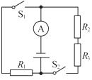 23.如图所示,电源两端的电压为12V,且保持不变,电阻R1与R2的比值是4∶1。当S1闭合、S2断开时,10s内电流通过R1产生的热量是24J;当S1断开、S2闭合时,电流表示数为0.3A,则电阻R3的阻值是________Ω。