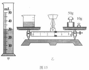 28.小航在实验室测量盐水密度。小航先将盐水倒入量筒,如图13甲所示,测盐水的体积为 cm3。接着小航用天平测出空烧杯的质量为30g,然后他将量筒中的盐水全部倒入烧杯,用天平测出烧杯和盐水的总质量,天平平衡时的情景如图13乙所示,则烧杯和盐水的总质量 g。请你根据以上实验数据计算出盐水的密度为 kg/m3。