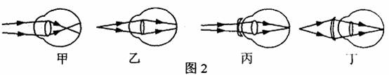 4.图2所示的四幅图中,表示近视眼成像情况和近视眼校正后成像情况的图分别是