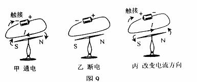 19.图9是奥斯特曾经做过的实验,观察比较甲、乙两图,可得实验结论是