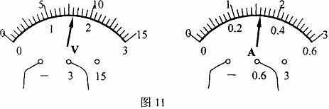 (2)请把第二次测量时,图11所示的电压表和电流表示数填入表2中相应的空格。