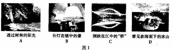 2.如图1所示的四种情景中,属于光的直线传播的是 ( )