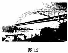 19.2009年4月29日,创下多项世界第一的重庆朝天门长江大桥正式通行(如图15)。大桥主桥长932m,全桥永久用钢达到国内创纪录的4.6×107kg