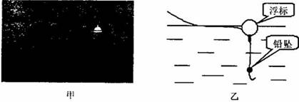 21.为了响应“健康重庆”的号召,小林和爸爸周末到郊外去钓鱼,他在亲近大自然的同时还观察到爸爸在钓鱼前要“试漂”来确定铅坠(铅坠由合金制成)的大小,尽量使“浮标”更灵敏(如图17甲所示),图17乙是浮标和铅坠的位置示意图。若球形浮标的体积为15cm,铅坠的密度为11 g/cm3。(取水的密度ρ水=1.0×103kg/m3,g=10N/kg)