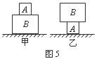11.已知两个实心圆柱体A、B的底面积之比为1:3,高度之比为2:3,构成A、B两个圆柱体物质的密度分别为ρA和ρB。将B放在水平地面上,A叠放在B上面(如图5甲所示),B对地面的压强为p1。若把B叠放在A上面(如图5乙所示),B对A的压强为p2。若p1:p2=1:2,则ρA:ρB为
