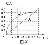 32.两个电路元件A和B中的电流与它们各自两端电压的关系如图20所示。将A和B并联后接在电压恒为2.0V的电路两端,则元件A和B消耗的总电功率为 。