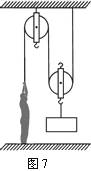 12.如图7所示,小东利用滑轮组先后竖直向上匀速提升物体A和物体B。当提升物体A时,滑轮组的机械效率为75%,小东对绳子的拉力为F1;当提升物体B时,滑轮组的机械效率为62.5%,小东对绳子的拉力为F2。已知小东的质量为65kg,物体A的质量为90kg。假设在拉绳子的过程中,小东对绳子的拉力与对地面的压力始终竖直向下且在同一直线上,不计绳重和摩擦。g取10N/kg。则下列说法正确的是