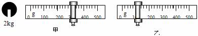 小明根据修正后的实验方案完成了实验。如图甲、乙所示为实验过程中用台秤分别称量m1和m2时的槽码及游码示数,请你根据图示把下面记录数据的表格填写完整。