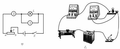 (1)图甲中表①应是 表。实验中为了使表②的示数增大,滑片P应该向 端移动;
