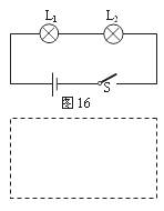 34.李丹把标有“2.5V 0.3A”和“3.8V 0.3A”两个小灯泡 L1、L2按图16接入电路,闭合开关后,发现灯L1较暗,灯L2较亮,因此李丹认为:灯的亮度与额定电压有关,灯的额定电压越大灯就越亮。请你利用图16中的器材(不限导线)设计一个实验,并根据实验现象说明李丹的解释是错误的。请你完成下列问题: