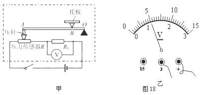 (1)托板空载时,电压表的示数如图18乙所示,求定值电阻R0的大小。
