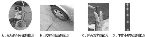 13.如下图所示,其中与其它三个力所产生的作用效果不同的是 ( )