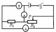 14.如下图所示,电源电压保持不变时,当滑动变阻器滑片P向右滑动过程中 ( )